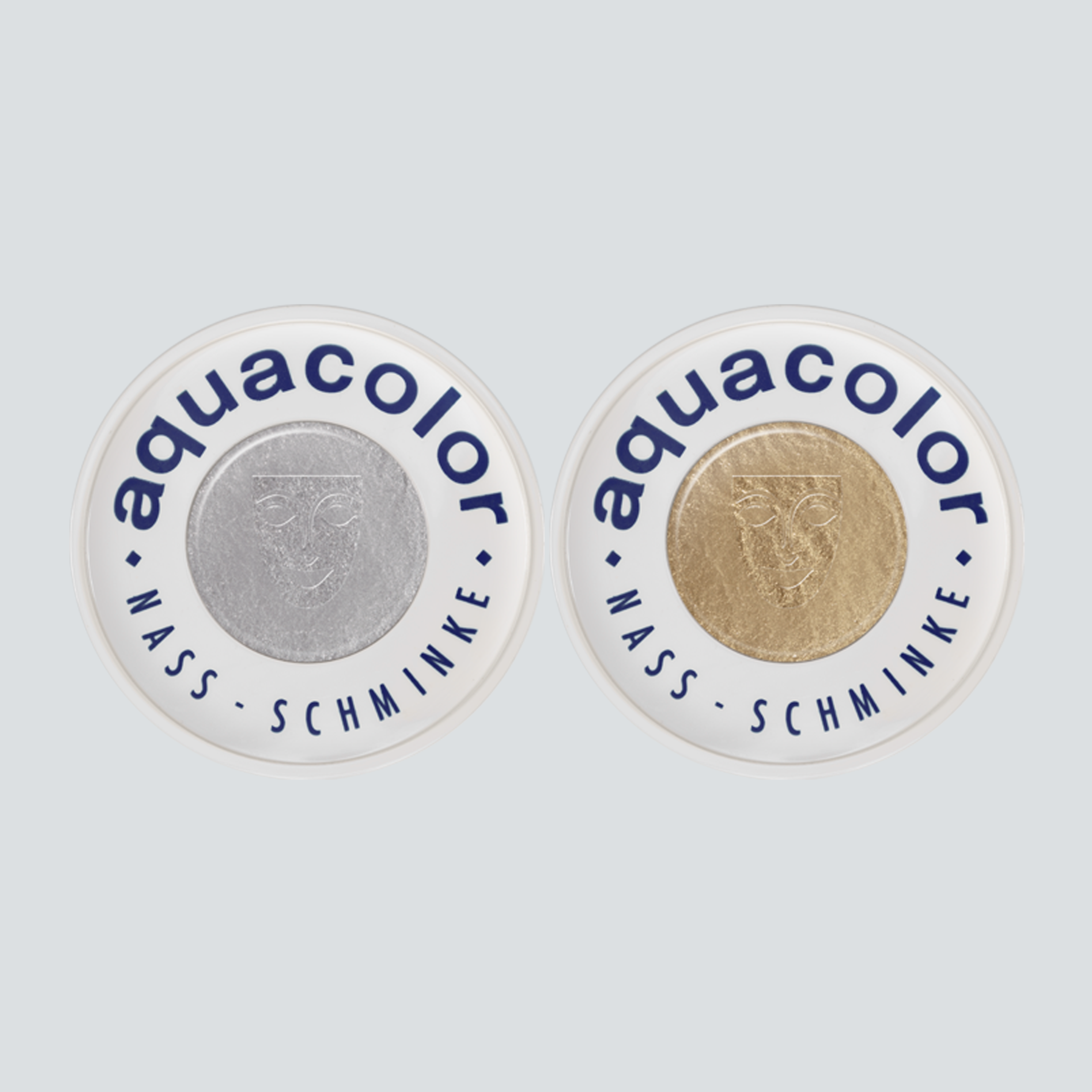 Aquacolor Metallic es un maquillaje compacto iridiscente a base de glicerina, que contiene pigmentos metálicos intensos con efectos nacarados, para la creación de impresiones de maquillaje cautivantes en la cara y el cuerpo. La aplicación es fácil, con una esponja de maquillaje o un pincel ligeramente humedecido. Después del secado, se puede pulir suavemente con una toalla suave o con la mano. No requiere ser empolvado. Se recomienda fijar con spray fijador si el maquillaje se somete a condiciones extremas. Aquacolor Metallic es resistente a roces y se puede quitar fácilmente con agua y jabón. Además de los matices de colores clásicos de oro, plata, cobre y bronce, Aquacolor Metallic ofrece un gran surtido de colores vivos e iridiscentes