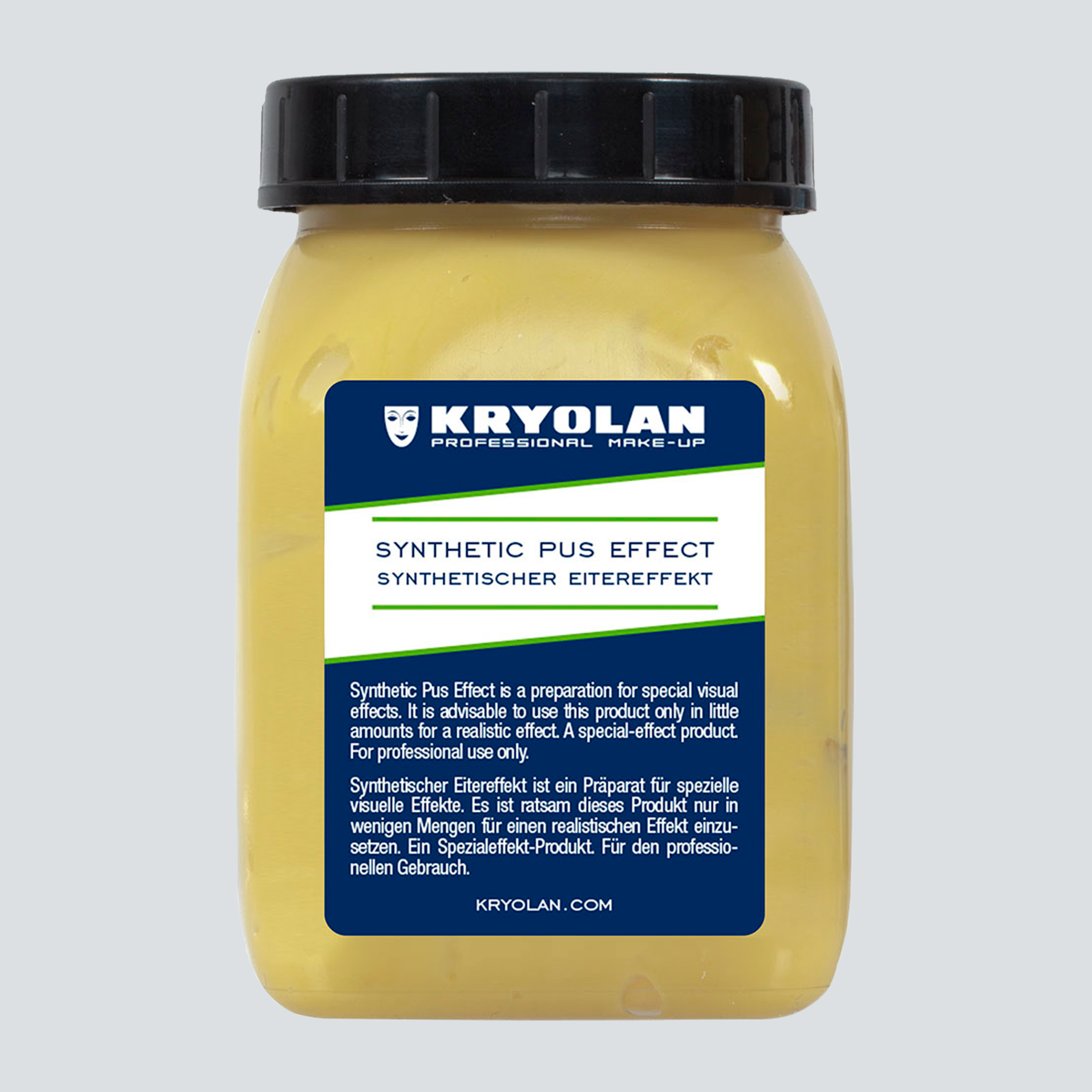 Efecto de pus sintético es una preparación para efectos visuales especiales, de consistencia y color apropiados y de calidad cosmética higiénica. Es aconsejable usar este producto sólo en cantidades pequeña, para crear un efecto realista.
