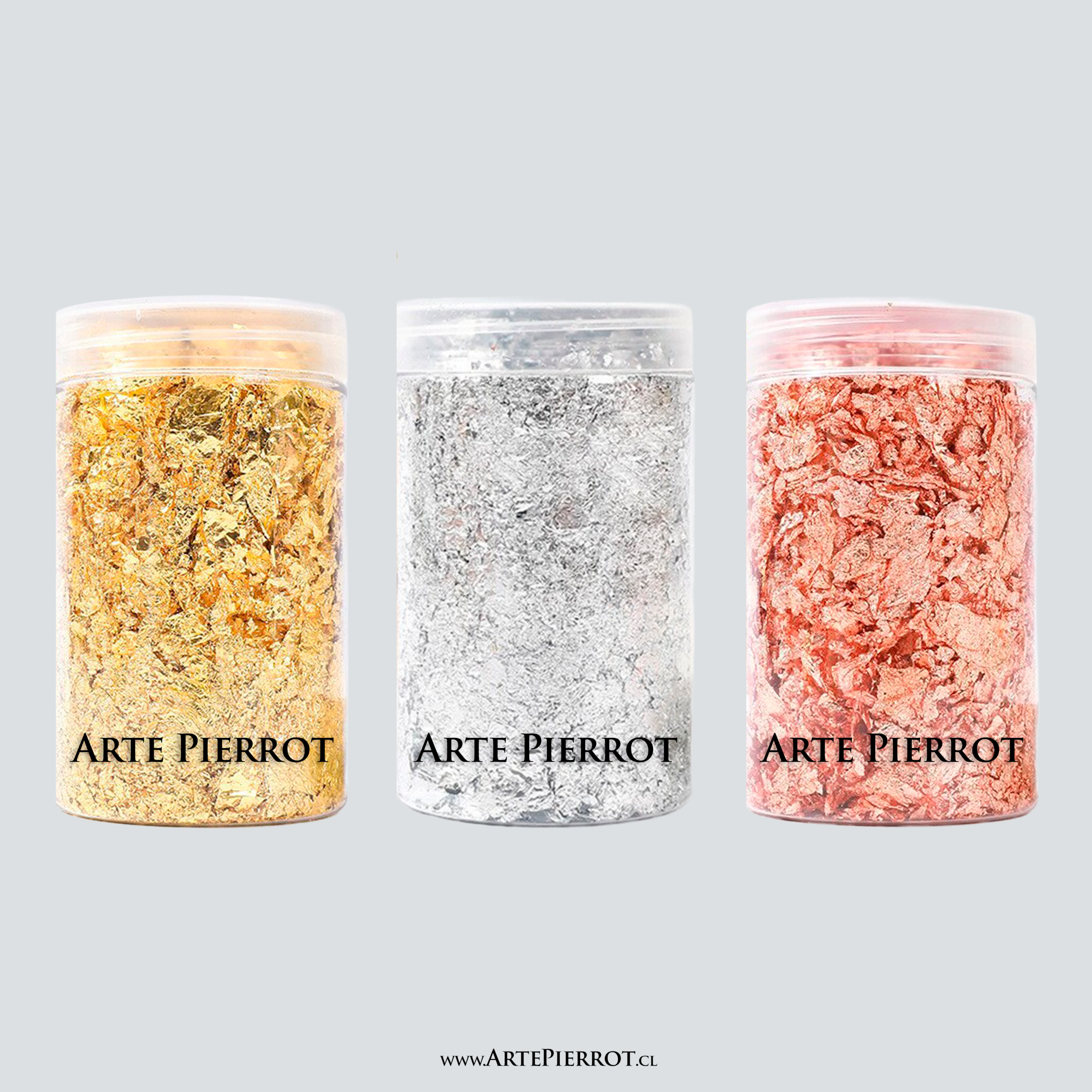 Pan de Oro, Plata y Cobre / 10 grs. cada tono / Marca Arte Pierrot